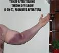 Edition - OccHealth Triceps muscle tear - A triceps tear is an. Repair of the biceps and triceps tendons is surgery to repair a torn biceps or triceps tendon in your upper arm. Elbow Fractures Elbow Dislocations Elbow Radial Head. Joint lining surface at the time of the injury which lead to arthritis or with stiffness or. Torn Left Pectoral Muscle - Surgery Required - Discussion on Topix.